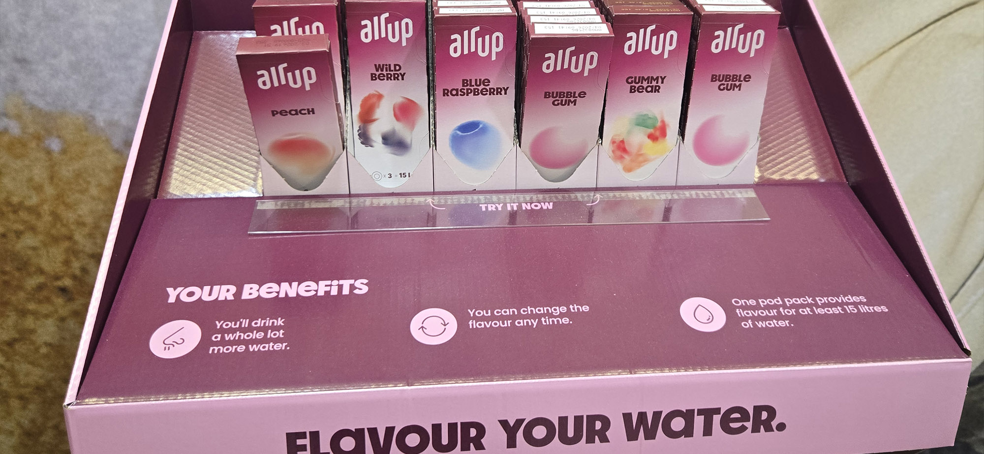 Aus den 62 Auserwählten wurde schließlich eine Top Ten gekürt. Das deutsche Unternehmen „Air Up“, das bereits seit 2018 seine zahlreichen Fans retronasal zum Wassertrinken animiert, gehörte dazu. Ausgezeichnet wurden sie für die Aktion „Liquid Rainbow“: fünf verschiedene Duft-Pods, jede Sorte mit einem eigenen Farbcode und einer klar definierten Geschmacksrichtung, sollen jeweils individuelle Stimmungen vermitteln. Der Duft „Guave Crush“ wirkt exotisch, unbeschwert, fast sommerlich. „Apricot Glow“ riecht nach Aprikose und Physalis und verspricht innere Balance für alle, die Achtsamkeit, Sonne und einen Hauch „Selfcare“ in ihre Trinkroutine bringen wollen. „Kiwi Chill“ wiederum steht für mentale Entschleunigung. „Berry Bold“ setzt auf Beere und Hibiskus und bildet quasi den Gegenentwurf – mit viel Selbstbewusstsein. Energieboost und Tatendrang verspricht „Energy Rush“. Kratzt hart an der Health-Claim-Verordnung, aber besser, Verbraucherinnen und Verbraucher lassen sich wassertrinkend von diesen Duftringen an der Nase herumführen, als dass sie auf chemischem Wege versuchen, in Stimmung zu kommen.