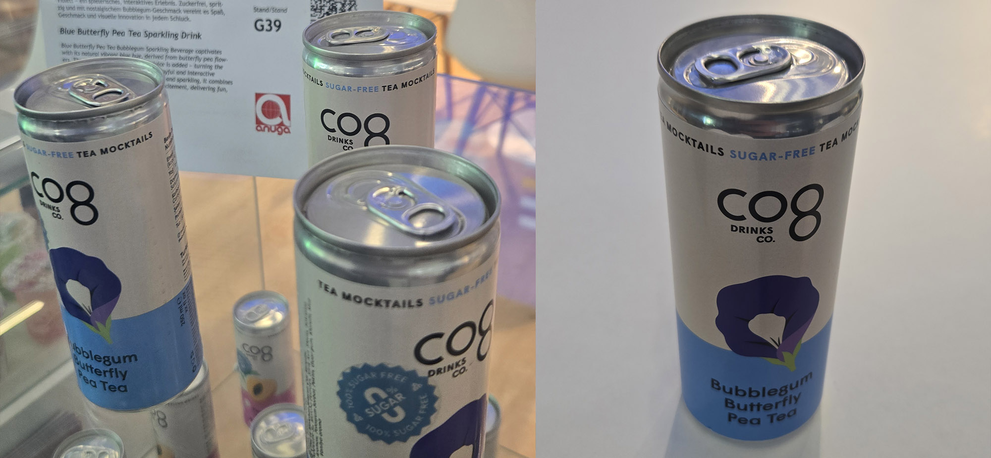 Wer es zwar nicht in die Top Ten geschafft hat, dafür aber als subjektiver Gewinner des Herzens gilt, ist der „Bubblegum Butterfly Pea“ von „Co8 Drinks Co.“ aus der türkischen Hauptstadt Ankara. Mit natürlichen Zutaten wie eben jenem Schmetterlingserbsentee entwickelte das Unternehmen einen wunderschönen blaulila Softdrink, der als Cocktail auf Partys für Freude sorgen wird. Ein paar Spritzer Zitrone – und er färbt sich pink: Der nächste Einhorn-Kindergeburtstag kann kommen, und für die Großen gibt es zauberhafte Mojitos oder Whiskey Highballs, wie die nette Dame vom Stand empfahl.