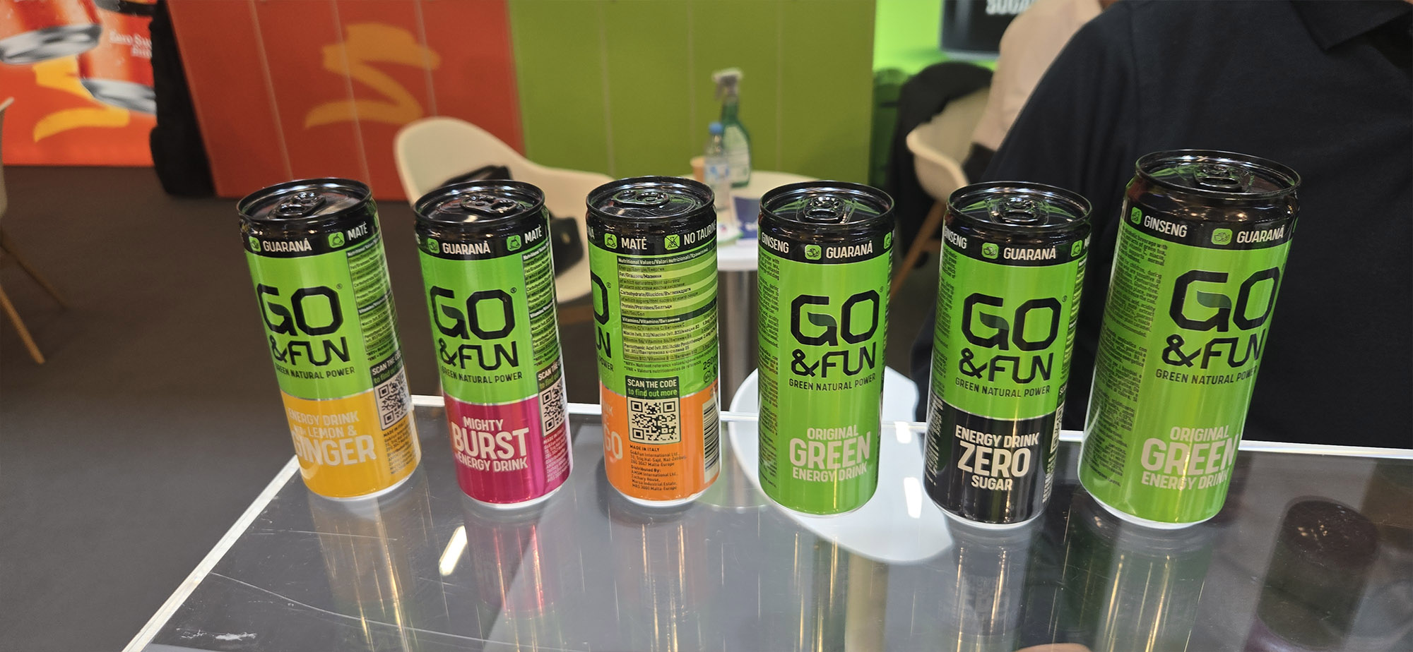 Auch interessant: Die italienischen Produzenten von „Go & Fun“ präsentierten einen Energy-Drink mit der vollen Koffeindröhnung aus grünem Kaffee, Mate, Guarana und grünem Tee – vergleichbar mit dem österreichischen Dauerbrenner, aber ohne dessen prägnanten Tauringeschmack, dafür unter anderem mit angenehm erfrischendem Ingwergeschmack, „den besonders die Deutschen lieben“, wie der Herr am Stand bemerkte.