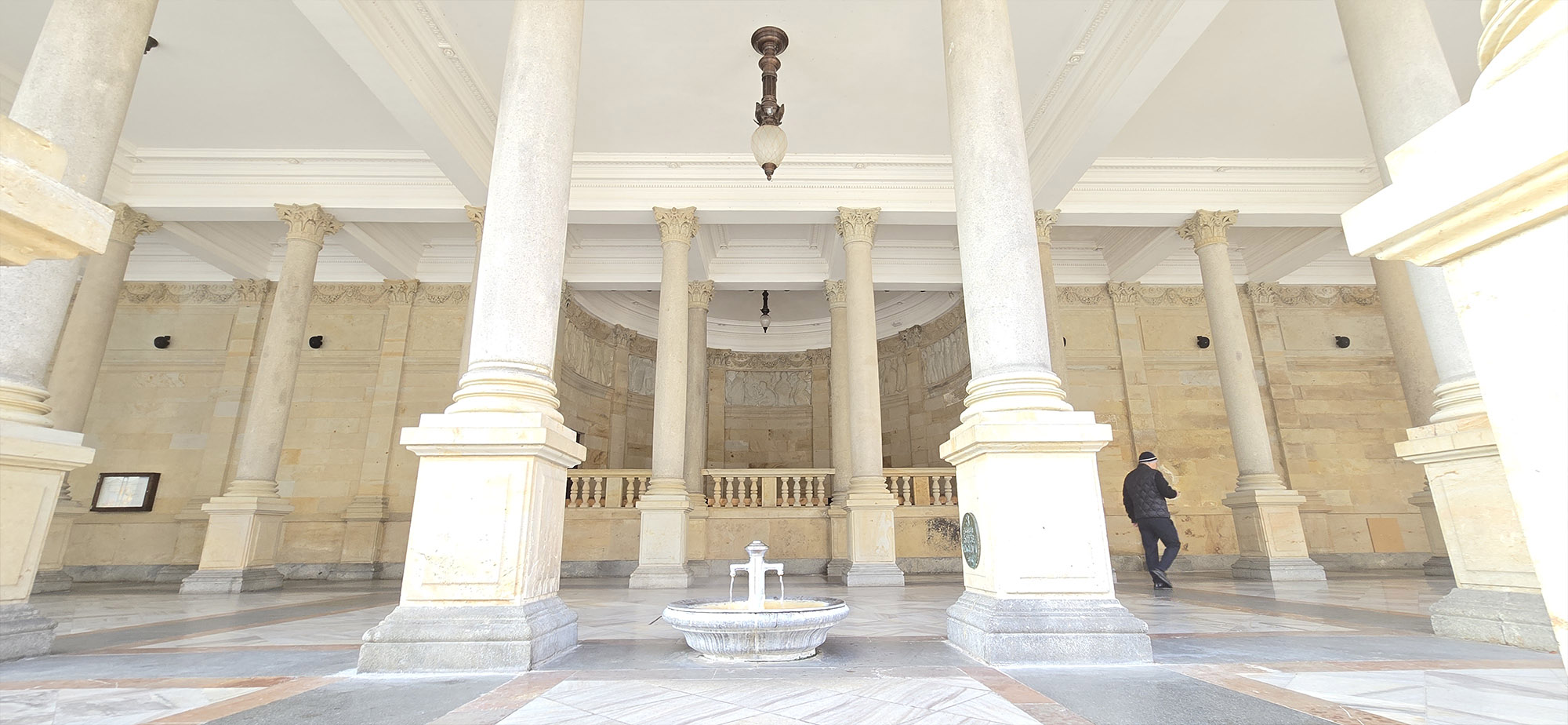 In den opulenten Wandelhallen, den prächtigen Mühlbrunnkolonnaden „Mlýnská kolonaden“, prangen in goldenen Lettern in bestem humanistischen Latein auf einer Marmortafel folgende Sätze: