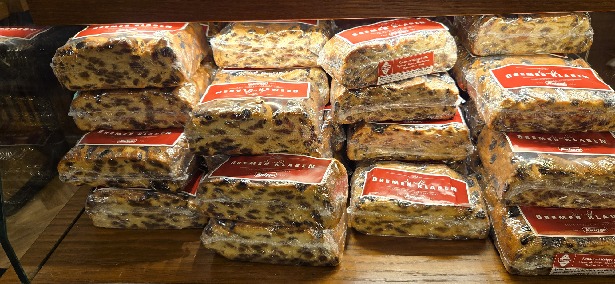 Eigentlich ist der Bremer Klaben eine traditionelle Weihnachtsspezialität. Inzwischen wird er aber das ganze Jahr über nachgefragt und hergestellt, rund 15 Tonnen pro Jahr. „Besonders seit der Pandemie ist der Verkauf im Onlineshop um 50 Prozent gestiegen und wir verschicken unsere Klaben in alle Welt, beispielsweise nach Australien, Amerika und Brasilien. Ein großer Vorteil dabei ist sicherlich seine lange Frische“, erklärt Konditormeister Andreas Knigge. Dabei ist der Bremer Klaben ein Gebäck, das typischerweise eigentlich nur in der Nordseeregion bekannt und geschätzt wird, während man im Rest der Republik in der Adventszeit den ähnlichen Stollen genießt.