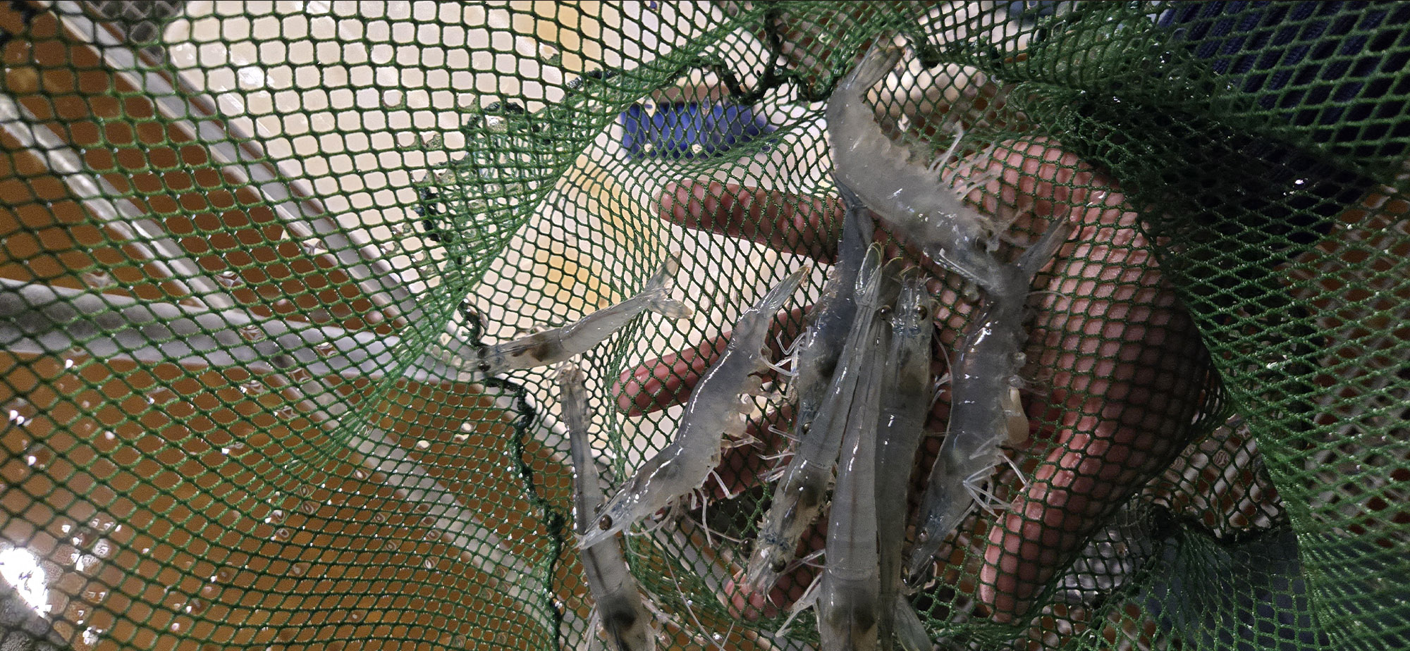 Ein bisschen wie im Aquarium des Berliner Zoos: Die Luft in der Produktionshalle in Glückstadt ist warm und feucht. Die Anlage ist mit ihrer Kapazität die drittgrößte ihrer Art weltweit. Auf einer Fläche von rund 4.000 Quadratmetern wurde hier ein hochkomplexes, geschlossenes Ökosystem geschaffen, das in 13 riesigen Mastbecken insgesamt 4.000 Kubikmeter Wasser beherbergt. Dieses Wasser wird konstant auf tropischen 29 °C gehalten – die ideale Umgebung für die White Tiger Garnele.