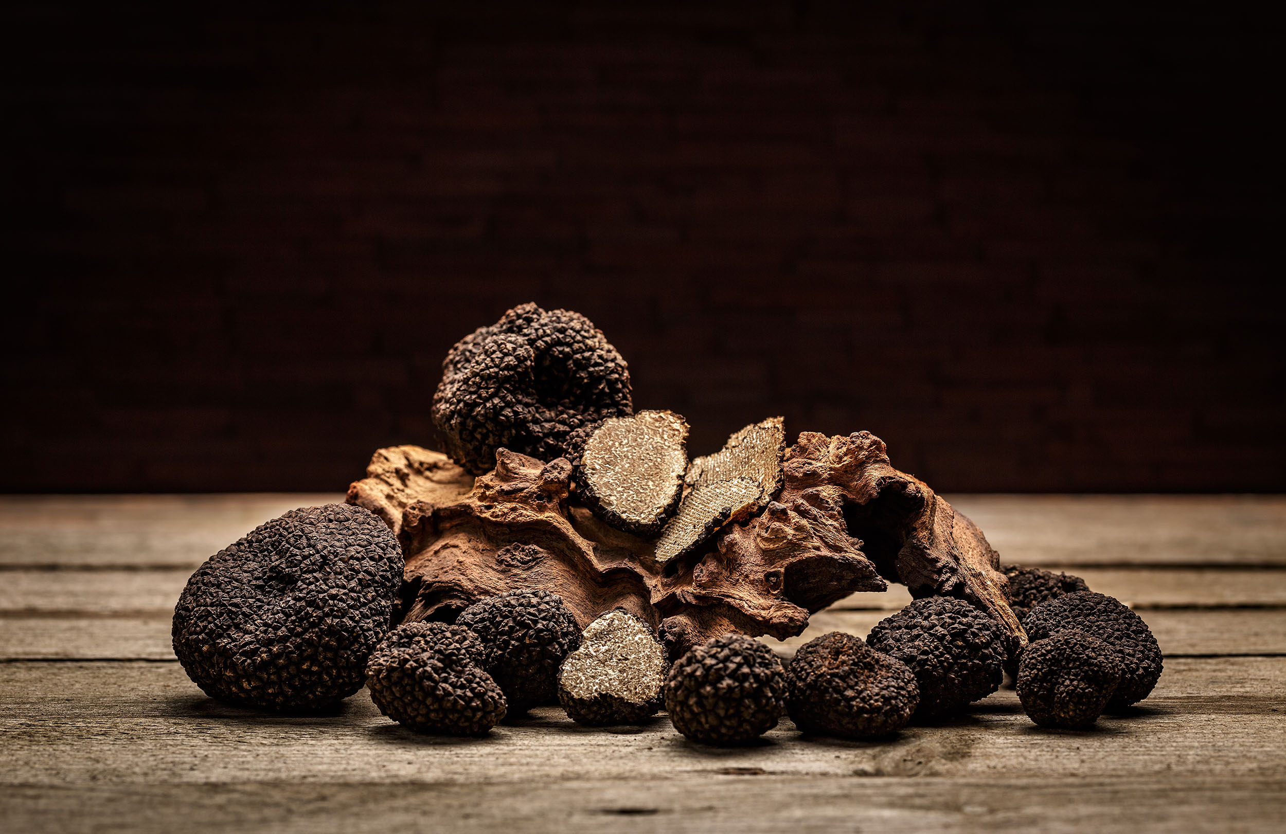 Eine Sonderstellung nimmt der weiße Trüffel aus Alba („Tuber magnatum“) ein. Er wächst ausschließlich wild, lässt sich nicht kultivieren und ist besonders empfindlich gegenüber Hitze. Verwendet wird er daher roh und hauchdünn über warme Speisen gehobelt. Die Ernte ist streng reglementiert: Im Piemont endet die offizielle Saison traditionell am 21. Januar, um die natürlichen Bestände zu schützen. Diese kurze Verfügbarkeit, kombiniert mit seinem intensiven, flüchtigen Aroma, begründet den außergewöhnlich hohen Stellenwert des Alba-Trüffels in der Spitzenküche. Er sollte innerhalb weniger Tage verbraucht werden und wird von der Manufaktur in der Europäischen Union innerhalb von 24 Stunden geliefert – nach Hongkong oder Tokio innerhalb von 48 Stunden.