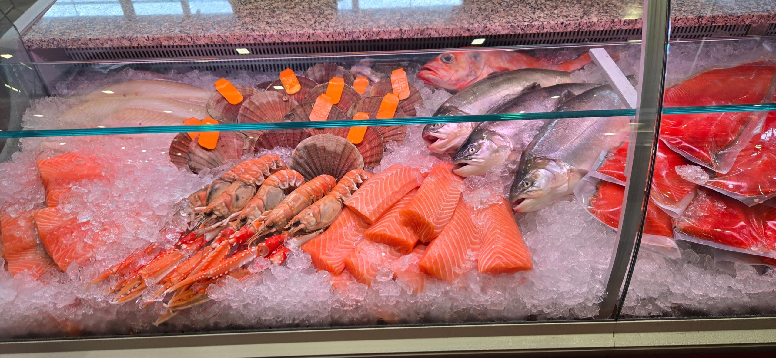 Die schönste Fischtheke der ganzen Messe hat möglicherweise einer von Deutschlands führenden Großhändlern, Transgourmet. Wie ist es möglich, eine solche Vielfalt nachhaltig anbieten zu können? Ansprechpartner dafür ist Sebastian Foßlang, der sich beruflich mit den maritimen Quellen des Angebots auseinandersetzt und das erfolgreich. Immerhin kann Transgourmet vorweisen, ASC-Lieferant des Jahres zu sein. Der ASC ist der Aquaculture Stewardship Council, der Zweig des WWF, der Speisefische aus Aquakulturen zertifiziert.