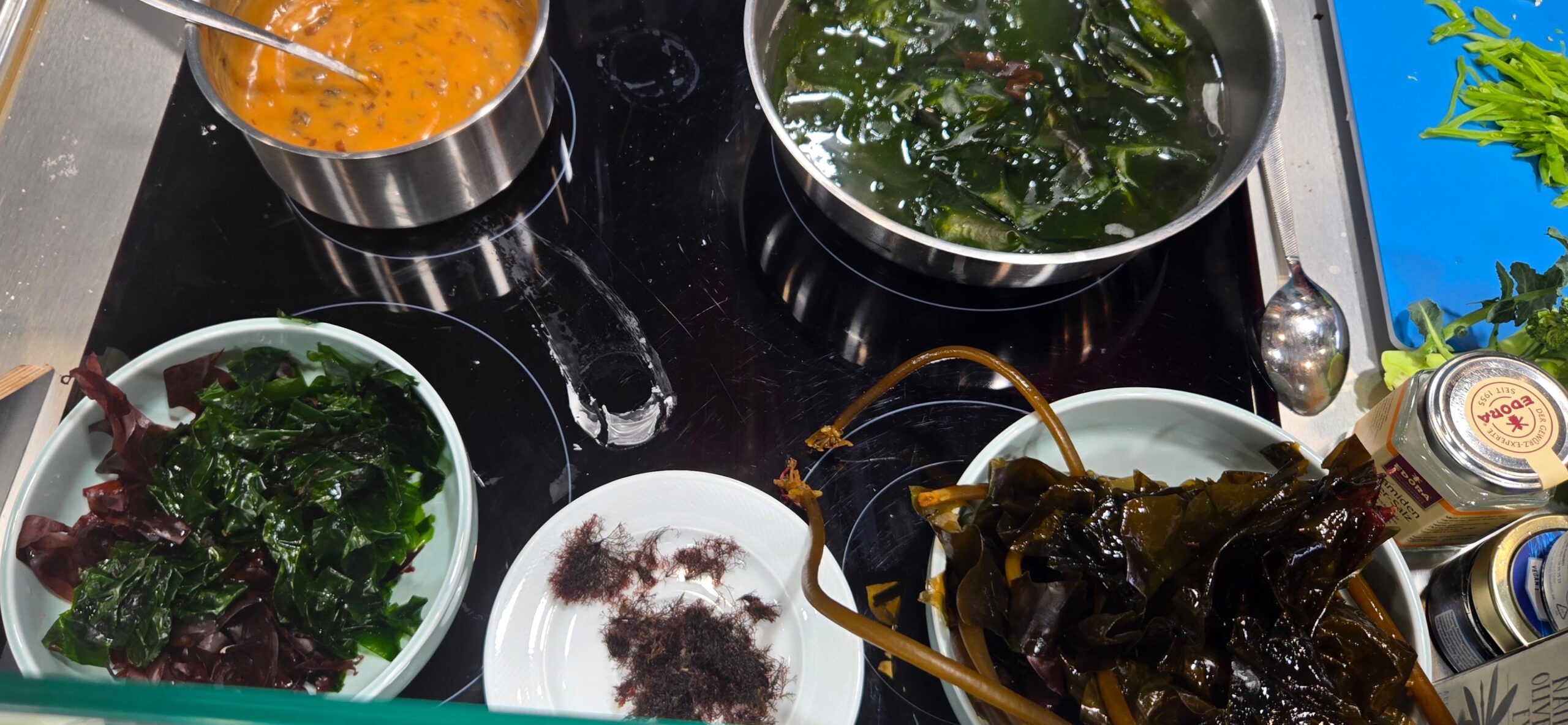 Sie selbst betreibt das Catering eines Boutique-Hotels auf einer Insel nördlich von Bergen in Norwegen. Dafür taucht sie rund um die Insel nach maritimen Köstlichkeiten wie Trüffeltang oder Sea Oak mit Austerngeschmack. Parallel zum Vortrag bereitet Koch Florian kleine Köstlichkeiten für das Publikum zu. Karamellpudding mit rauchiger Alge, ein leuchtender Spirulina-Dip, der wie Gravad-Lax-Sauce schmeckte, und zu guter Letzt ein jodiger Dashi, eine Algenbrühe auf Zuckertangbasis mit Kohl, Senf und Seetangkaviar. Selbstverständlich schmeckt das alles fantastisch!