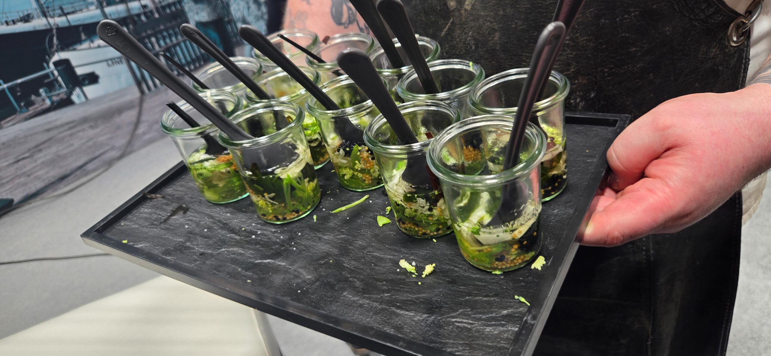 Durch die Gänge laufen die Jungs von Aqua Mossel Triton mit ihren mobilen Austernbars und bieten interessierten Besucherinnen und Besuchern ihre Umami-Austern zur Verkostung an. „Dabei handelt es sich um irische Austern, die in der niederländischen Oosterschelde beim dortigen Planktonangebot einen ganz hervorragenden Geschmack entwickeln“, erklärt einer von ihnen. Ein wirklich runder, köstlicher Geschmack, der weder Zitronensaft noch Champagner oder sonstige Begleitung benötigte, sondern einfach nur pur überzeugte.