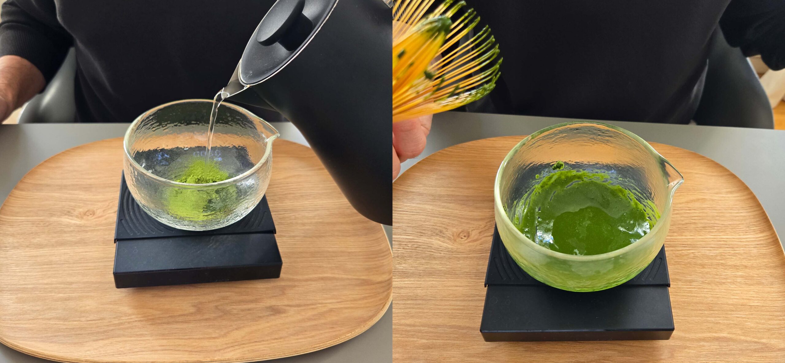 „Im Gegensatz zu losem Tee löst sich Matcha nicht im Wasser auf, sondern wird gleichmäßig darin verteilt“, erklärt Eduardo.