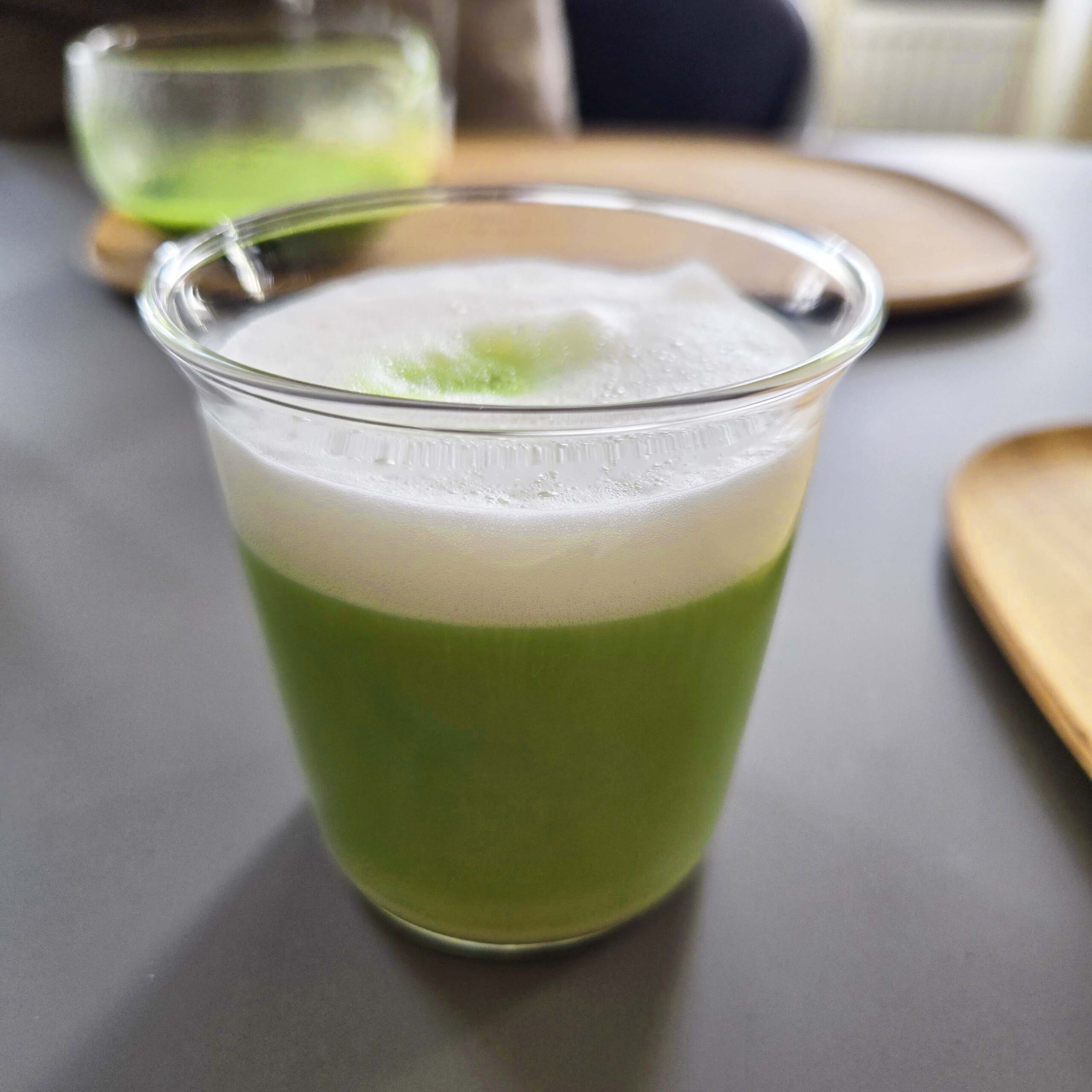 Beim ersten Schluck spürt man die Konsistenz des Schaums, die pudrige Struktur der Partikel, die sich im Mund verteilt. Die markante Bitternis des Grüntees, grasig und zunächst sehr präsent, weicht durch die adstringierende Wirkung der Gerbstoffe einer subtilen blumigen Süße und einer zunehmend deutlicheren Umami-Tiefe.