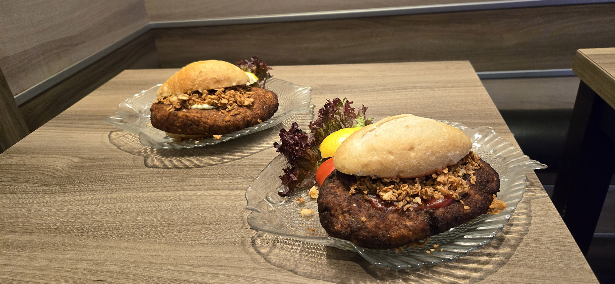 Zur Überraschung serviert der Koch zwei Fischfrikadellen, denn seit geraumer Zeit trendet der Bremer mit selbst gemachter Remoulade, wie man es ansonsten vielleicht vom Backfisch kennt, der mit seinen Zwiebel- und Gurkenstückchen fein säuerlich-kräuterig hervorragend schmeckt. Klassisch wird die Fischfrikadelle aber mit Ketchup und Röstzwiebeln serviert. Was möglicherweise banal klingt, funktioniert subjektiv betrachtet aber noch ein bisschen besser: Der Ketchup mit seiner fruchtig-süßen Note und die Röstzwiebeln, die nicht nur umami, sondern auch schönen Crunch geben, verleihen dem Snack rundherum mehr Tiefe.