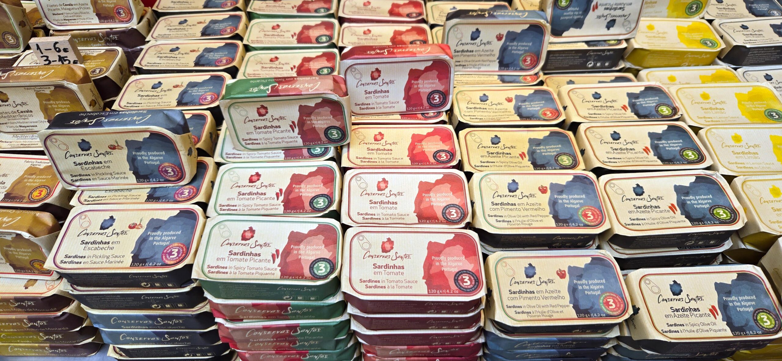 Mit gerade mal zwei Handgriffen lässt sich die Fischverkäuferin dabei beobachten, wie sie im Akkord mit der Küchenschere den Sardinen die Köpfe und Innereien wegschneidet. Hier werden sie frisch angeboten, klassisch kennt man sie als Ölsardine aus der Büchse, günstig, nahrhaft und vor allem satt machend. Portugiesische Ölsardinen erleben internationalen Hype. Oft werden die Dosen noch manuell verarbeitet und sind ein beliebtes Souvenir aus Portugal. In den schicken Restaurants in Berlin findet man sie auf der Speisekarte bisweilen für über 20 Euro, dann natürlich in der Qualität von Jahrgangssardinen, mit Sauerteigbrot Crostini, Kapern, Zitrone und Salat Garnitur.