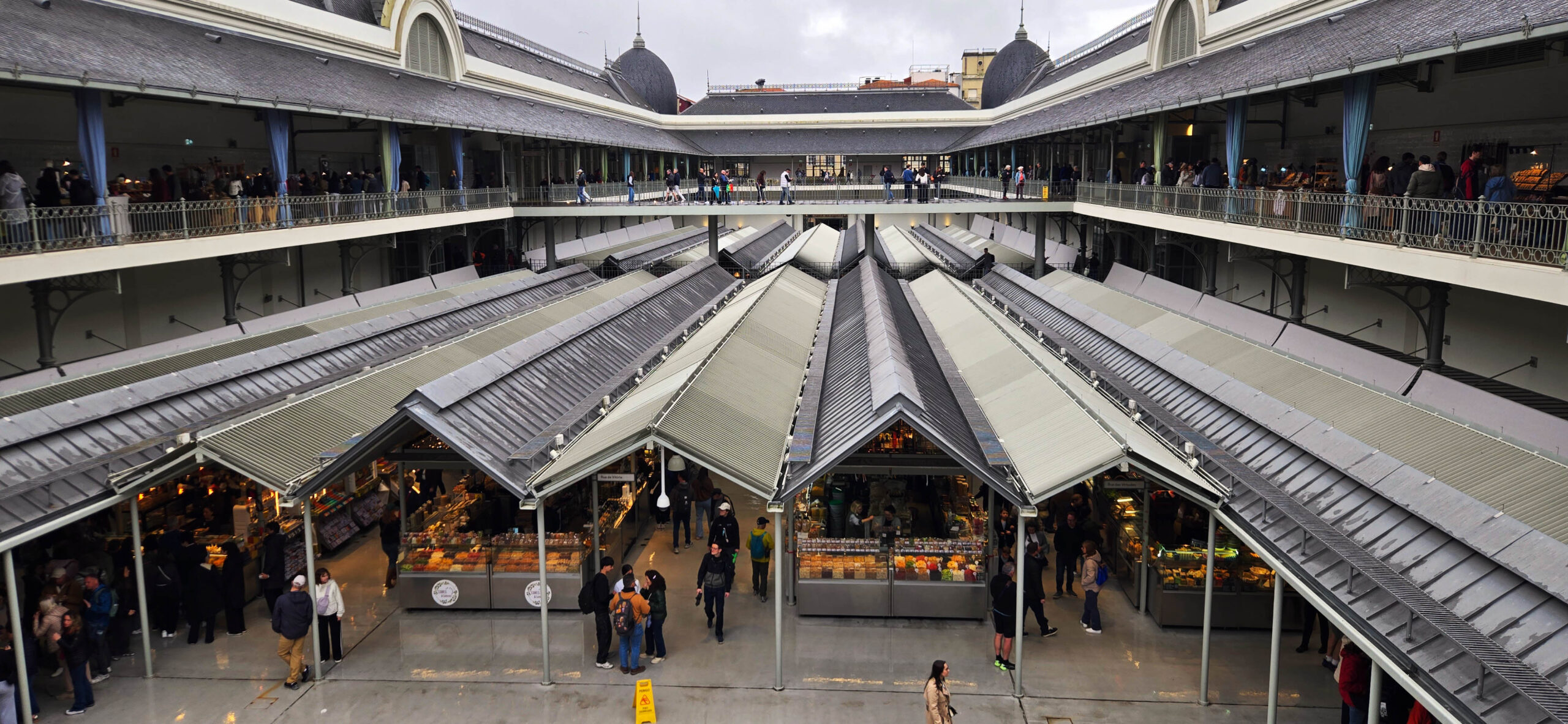 Hier in der Markthalle stapeln sich die farbenfroh und fantasievoll designten Konservendosen auf den Verkaufstischen. An einigen Ständen bekommt man sie direkt als Kanapee, hübsch garniert mit Zitronenzeste oder Chili zum Beispiel.